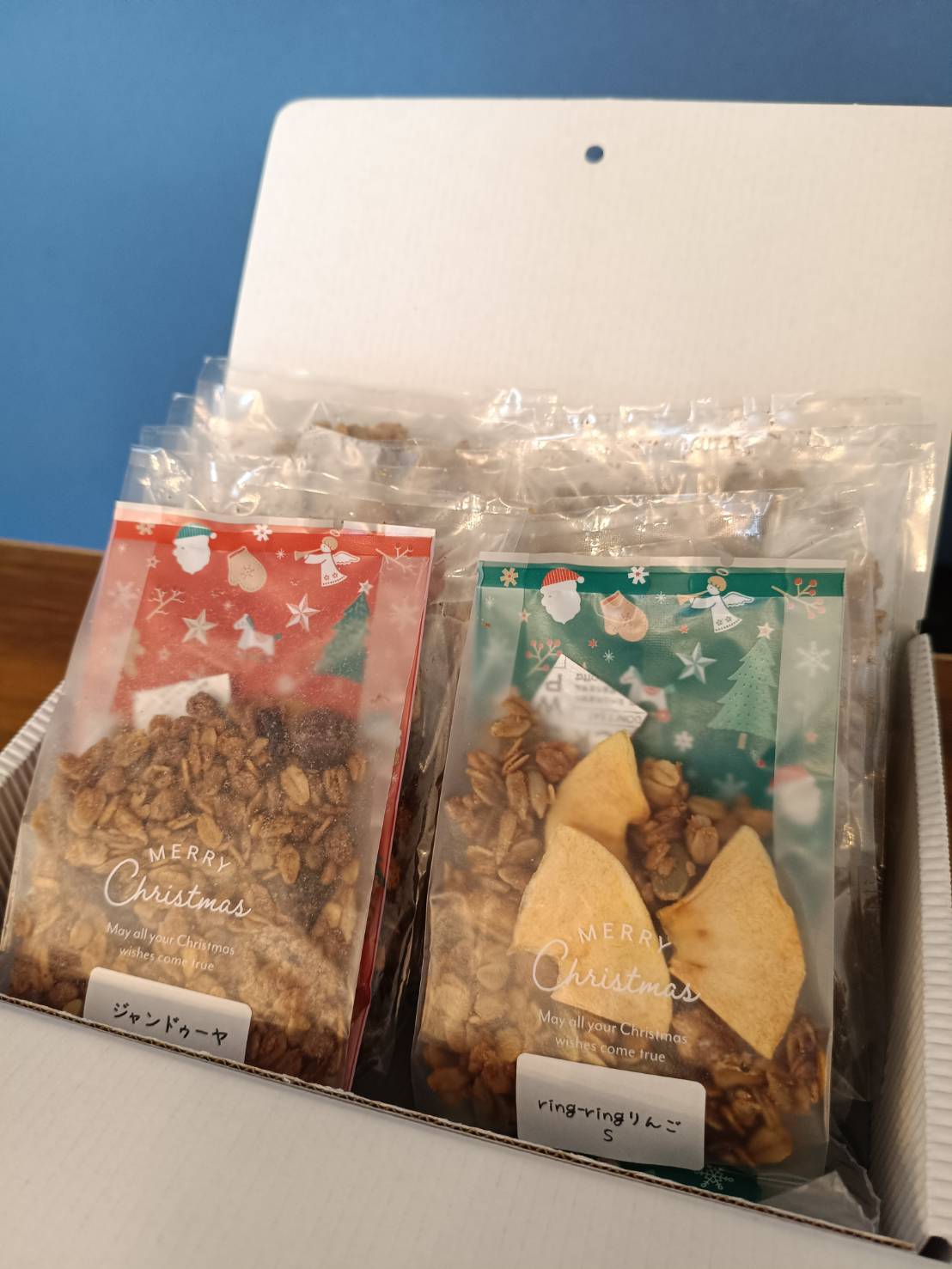 季節限定の「ジャンドゥーヤ」「ring-ringりんご」「キャラメルピーナッツ」を含むSサイズ12個入りです